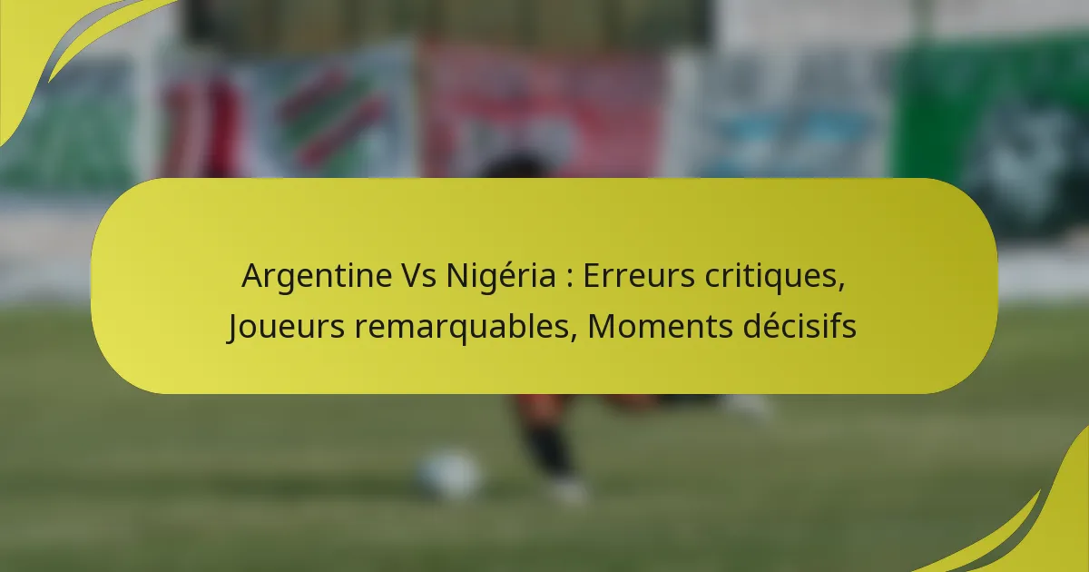 Le match Argentine contre Nigeria a été une rencontre palpitante marquée par des erreurs critiques qui ont façonné son issue, notamment des lacunes défensives et des occasions manquées. Des joueurs remarquables des deux équipes ont démontré leurs compétences, apportant des contributions significatives qui ont modifié la dynamique du jeu. Des moments clés ayant changé la donne, tels que des buts cruciaux et des arrêts décisifs, ont encore souligné les ajustements stratégiques et les talents individuels exhibés tout au long du match.